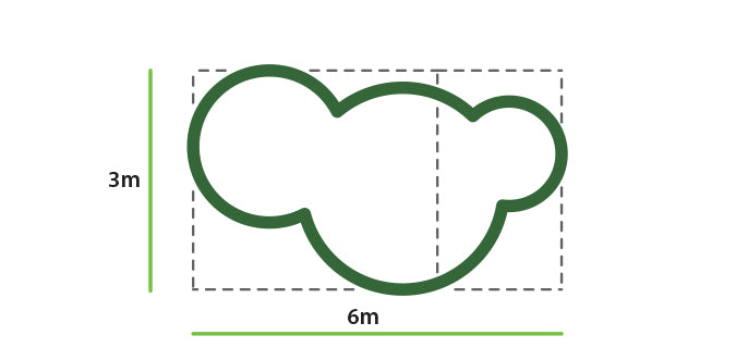 Voorbeeld: Heeft uw tuin bijvoorbeeld een vorm van een wolk en afmetingen van 3 bij 6 meter? Om het snijverlies en dus de kosten te beperken, deelt u de 6 meter door 4. U heeft dus 2 rollen van Drukverdeeldoek per vierkante meter nodig: 1 rol van 4 bij 3 meter en 1 rol van 2 bij 3 meter. Wilt u het aantal naden beperken? Dan heeft u voldoende aan 1 rol van Drukverdeeldoek per vierkante meter 4 bij 6 meter. U heeft in dat geval een snijverlies van 1 bij 6 meter.