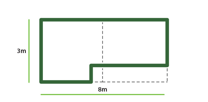 • Als u een L-vormige tuin heeft, raden we u aan de rolbreedte van 2 of 4 meter zo optimaal mogelijk in te zetten. In sommige gevallen kunt u een afgesneden stuk van Drukverdeeldoek per vierkante meter hergebruiken als u het kunstgras over de lengte legt.